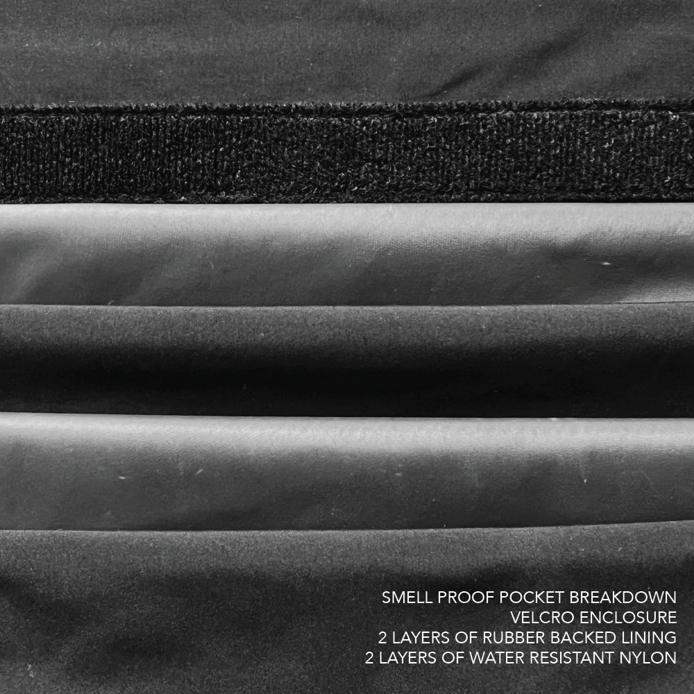 Outfitted with two odor-suppression exterior pockets with water-resistant zippers and a velcro enclosure to eliminate escaping fragrances. Highly intentional utility pockets to hold your pens, lighters, and other accessories. The Pilot has your trip covered.